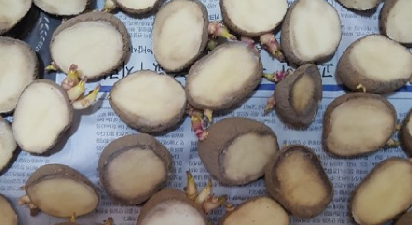 발아가 완료된 씨감자는 심기 전까지 통풍이 잘되는 곳에 보관, 씨감자가 상하지 않도록 습기를 피하고, 싹이 부러지지 않게 조심합니다.