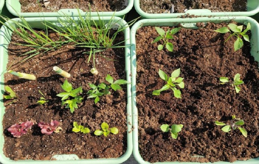 약 4~ 6주 후, 묘목이 5~ 6cm로 자라면 텃밭으로 옮길 준비를 합니다.